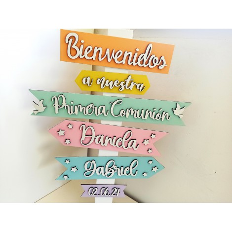 Cartel Flechas Bienvenida Mi Primera Comunión Personalizado