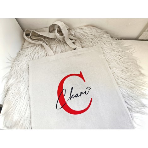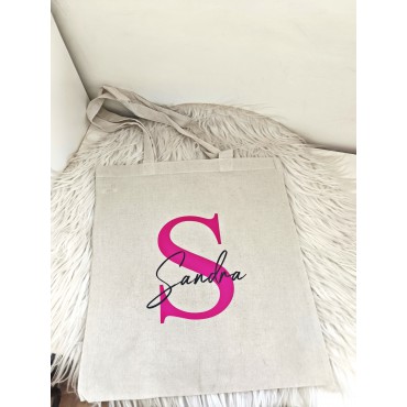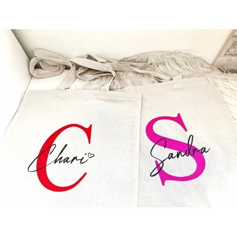 Bolsa de tela personalizada con inicial y nombre en tu color favorito.